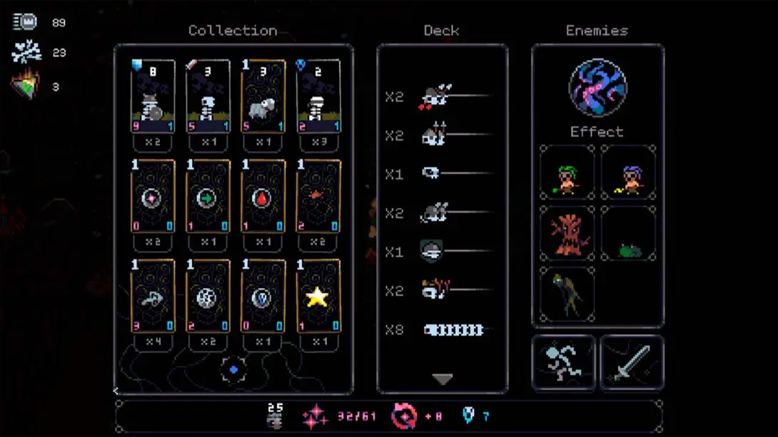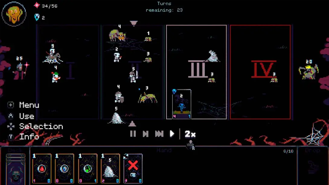 游戏创新性地引入卡牌构筑机制——“Skull Deckbuilding”,通过解锁新卡牌(Skulls)和升级单位技能,自定义你的出战组合。每一次游戏都能尝试全新流派,如“高速突袭流”“亡灵海压制流”或“诅咒腐蚀流”。